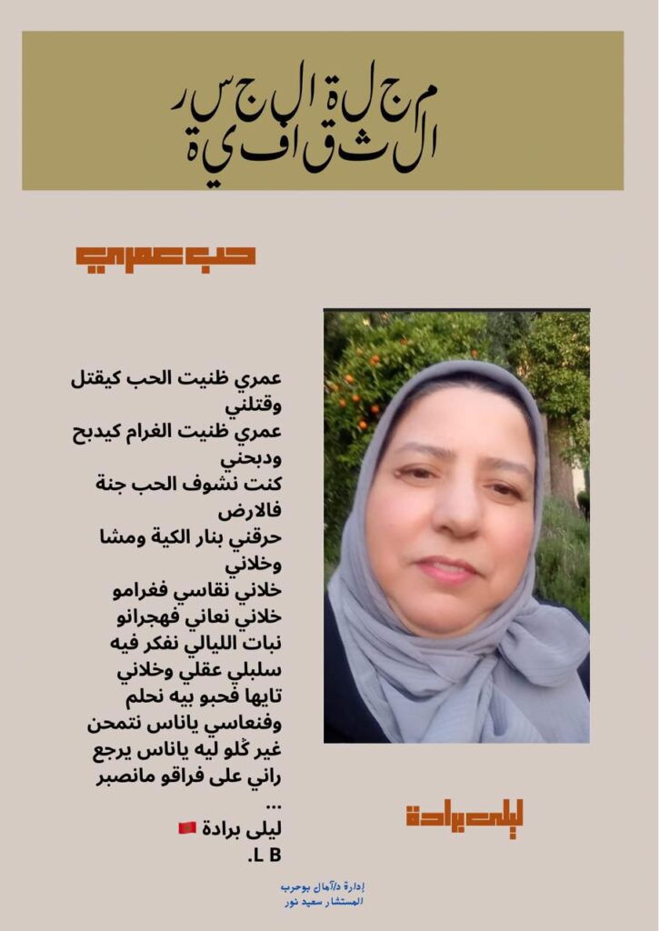 الشاعرة المغربية ليلى برادة في رثاء للأنين الصامت الوجودي عبر أجراس من الكلمات..خريبكة اليوم- المغرب