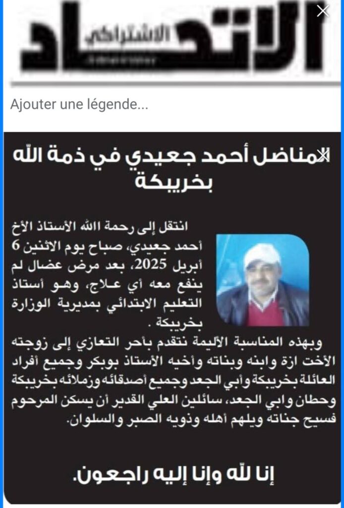 ودعنا سي أحمد أجعيدي في صمت، وهو يحمل معه للقبر تاريخ حزب الوردة في زمنها المزهر و التي ذبلت فيما بعد بفعل موجات الجفاف السياسي المتعاقبة و الذي دفن ومعه كل الجلسات والحوارات والناقشات السياسية  الحامية سواء في زمنه بمقر الحزب بحطان أو بمقهى الزهور بخريبكة؛ صحبة وجوه ووجوه كثيرة رحلت لدار البقاء. وبقيت سوى أخلاقهم شاهدة على تضحياتهم.. والسي أحمد صاحب القلب الأبيض، كان يضحي بوقته؛ ويعطي من صحته للوقوف إلى جانب كل رفاقه وأبنائهم. و كل من كان في حاجة إليه يطلبه ..فهو كما عرفناه لايتوانى في الحضور للدعم والمساندة كيفما كانت الظروف..لذلك لما رحل ظلت صورته كإنسان وكصديق وكأخ بظله السياسي والنقابي حاضرة بين أحبابه وأصدقائه وذويه وهم يدعون له بالرحمة والمغفرة وحسن الخاتمة،وهم يشيعون جثمانه لمتواه الأخير…