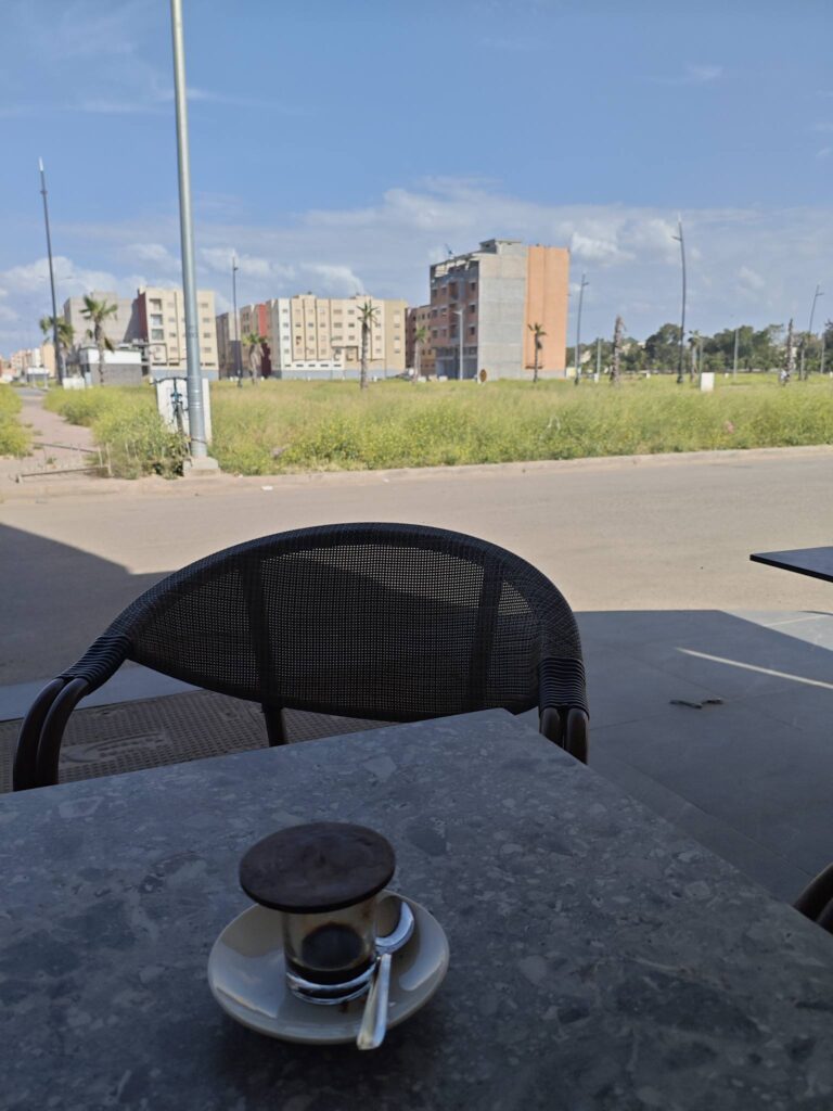 وفي هذه الأيام الأخيرة اكتشفت صدفة مقهى في محيط طبيعي رائع تجعلك تعيش لحظة الجلوس بٱمتياز..والسكون والتأمل إن شئت إذ يتواجد أمامها حديقة ربانية تصدق في حقها الآية الكريمة “